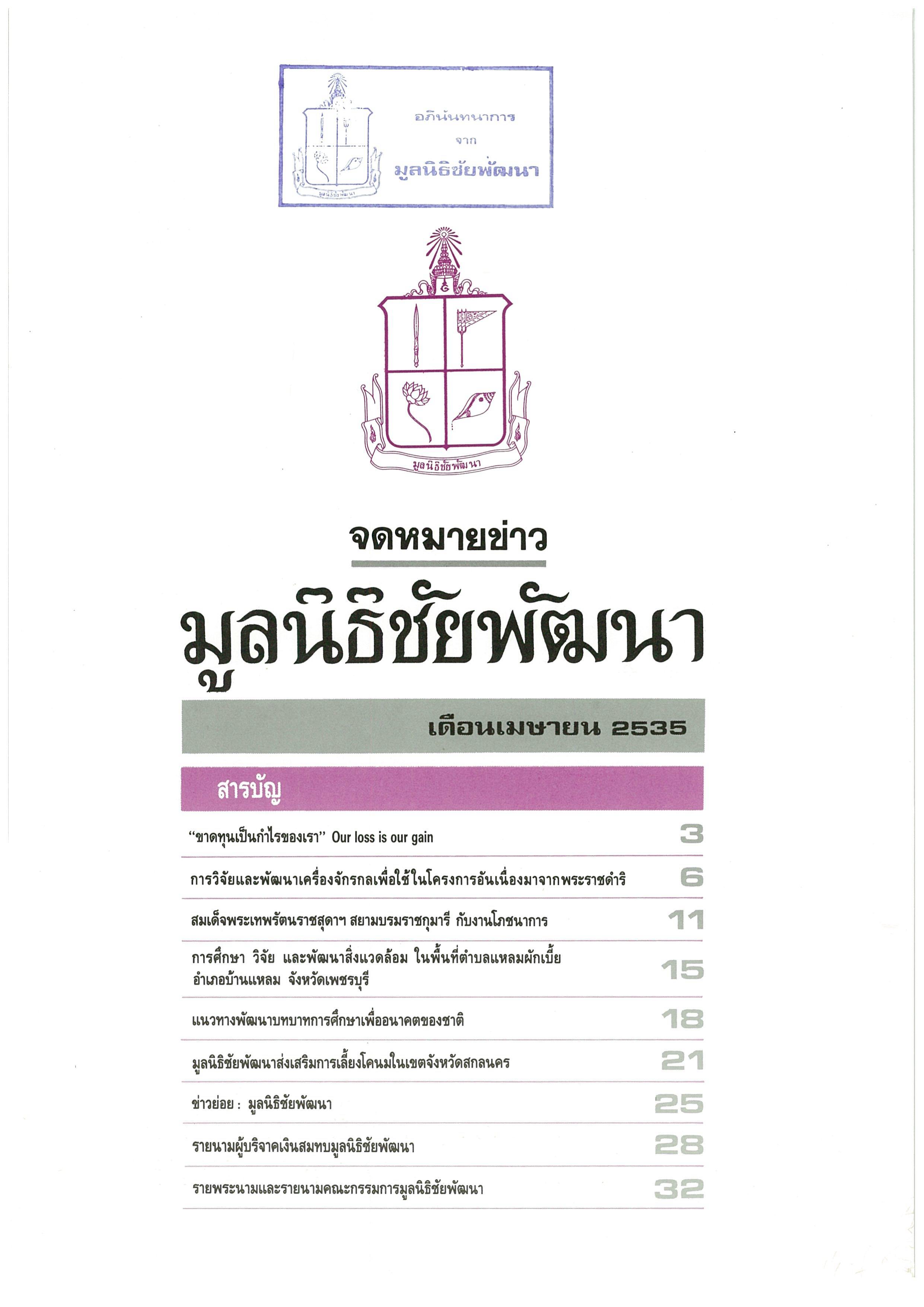 วารสารมูลนิธิชัยพัฒนา ฉบับบเดือนเมษายน 2535
