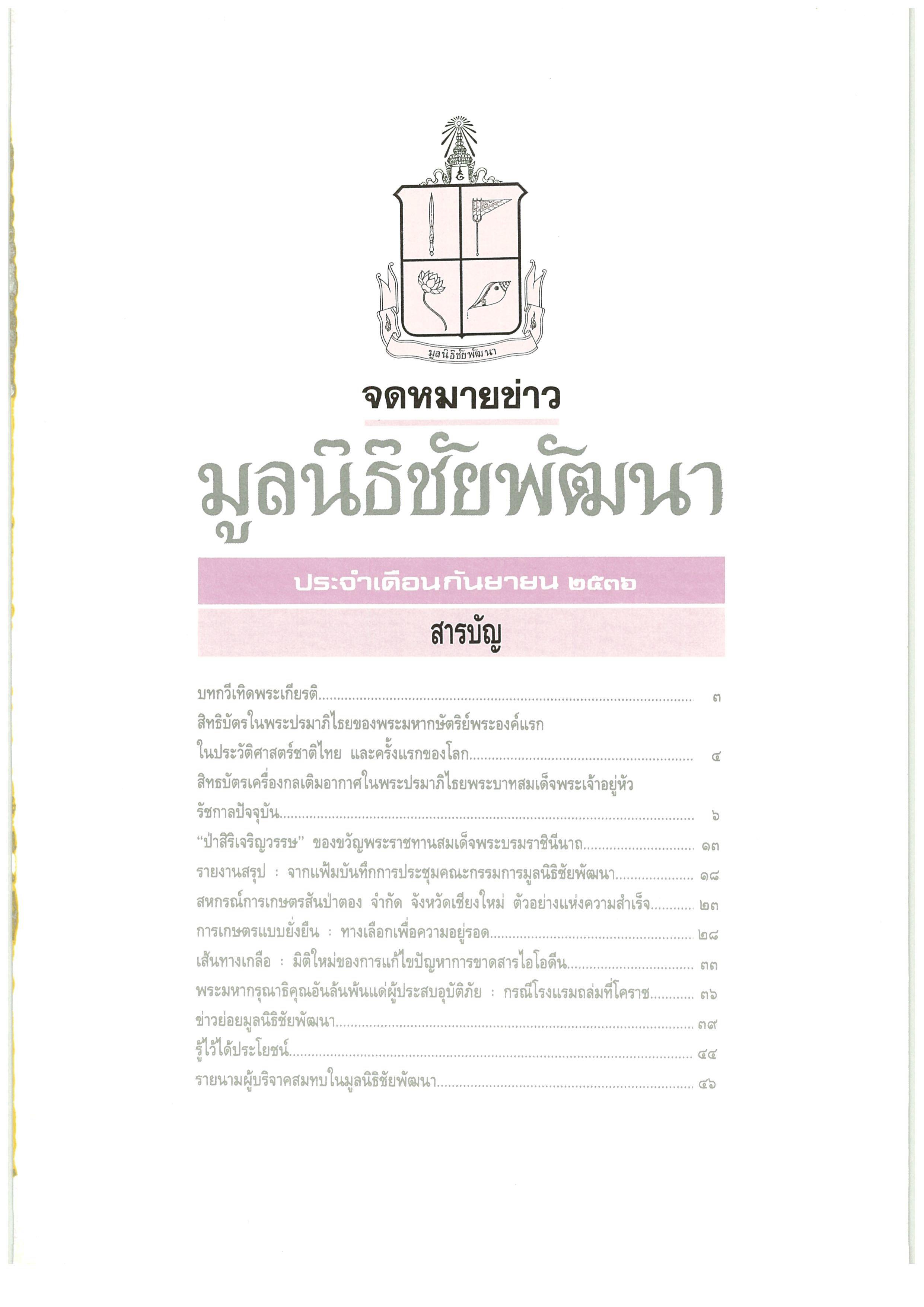 วารสารมูลนิธิชัยพัฒนา ฉบับบเดือนกันยายน 2536