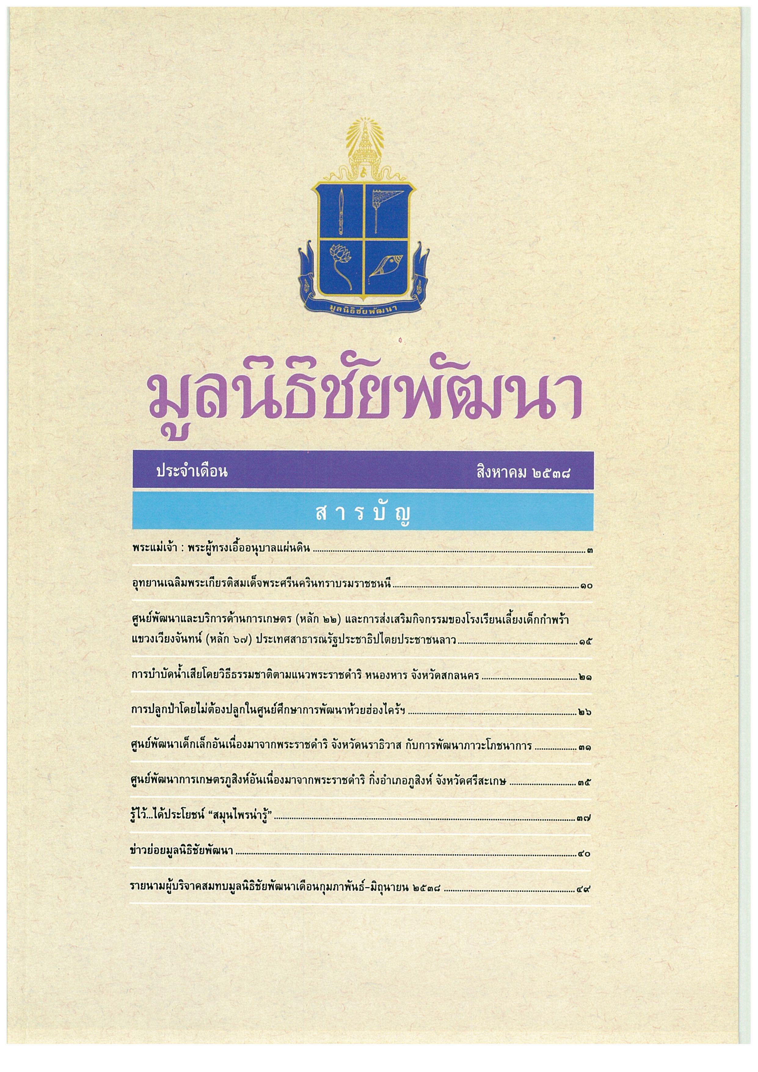 วารสารมูลนิธิชัยพัฒนา ฉบับเดือนสิงหาคม 2538