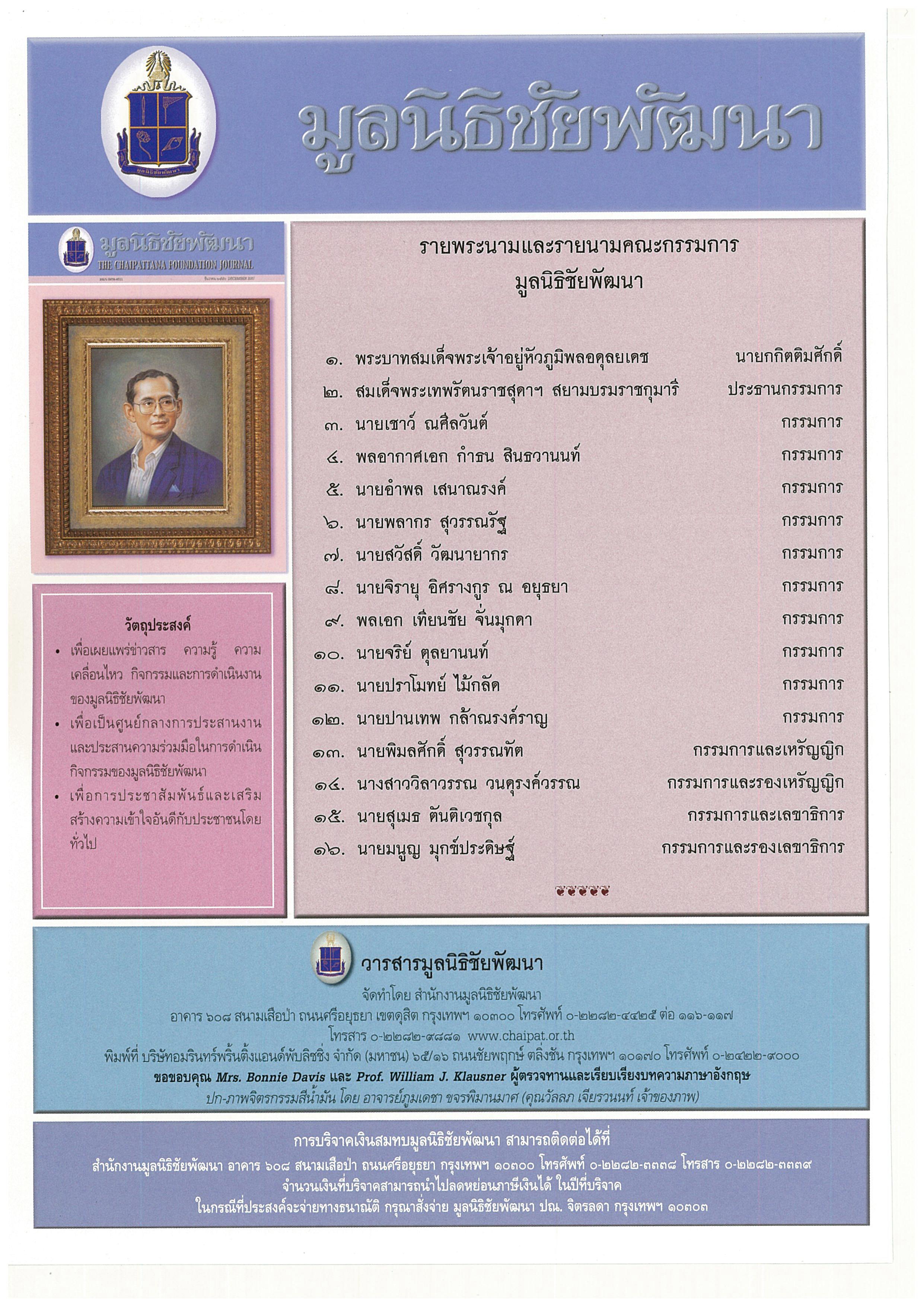 วารสารมูลนิธิชัยพัฒนา ฉบับเดือนธันวาคม 2550