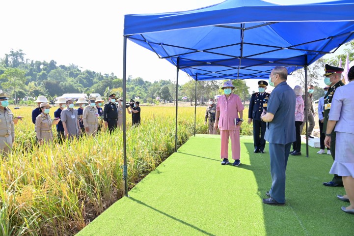 สำหรับข้าวที่จะทอดพระเนตรการเก็บเกี่ยวในครั้งนี้คือข้าวพันธุ์ กข 79 เป็นข้าวพันธุ์ใหม่ที่ได้รับการรับรองจากกระทรวงเกษตรและสหกรณ์ เมื่อเดือนกุมภาพันธ์ 2562 โดยข้าวมีลักษณะเป็นข้าวนุ่ม มีอายุการเก็บเกี่ยวประมาณ 118 วัน มีคุณภาพเมล็ดทางกายภาพดี เมล็ดเรียวยาว ท้องไข่น้อย คุณภาพการสีดีมาก นอกจากนี้ยังเป็นข้าวอมิโลสต่ำ ให้ผลผลิตสูง ต้านทานเพลี้ยกระโดดสีน้ำตาลและโรคไหม้