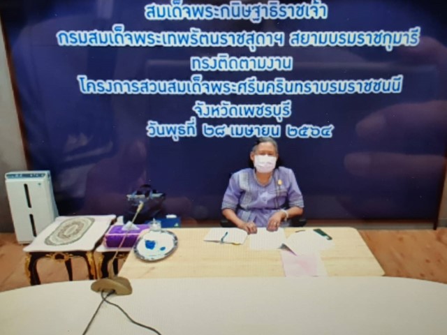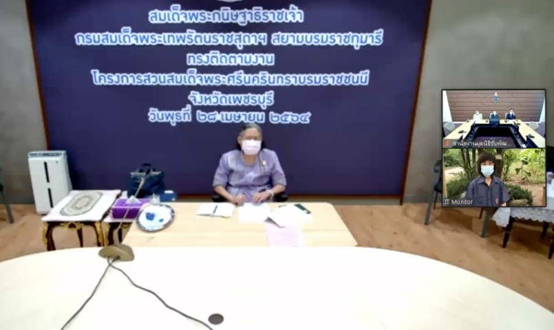 วันที่ 28 เมษายน 2564 เวลาประมาณ 08.30 น. สมเด็จพระกนิษฐาธิราชเจ้า กรมสมเด็จพระเทพรัตนราชสุดาฯ สยามบรมราชกุมารี เสด็จ ณ ห้องประชุมวังสระปทุม ทอดพระเนตรการดำเนินงานโครงการสวนสมเด็จพระศรีนครินทราบรมราชชนนี ตำบลสามพระยา อำเภอชะอำ จังหวัดเพชรบุรี ในรูปแบบการประชุมผ่านสื่ออิเล็กทรอนิกส์