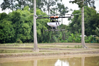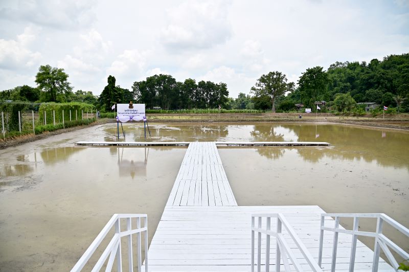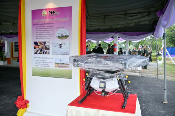 โอกาสนี้ ได้ทอดพระเนตรการสาธิตการใช้อากาศยานไร้คนขับทางการเกษตร (UAV) เพื่อการผลิตข้าว ซึ่งเป็นนวัตกรรมที่จะช่วยลดต้นทุนด้านแรงงานเมื่อเปรียบเทียบกับวิธีผลิตเดิม สามารถทำงานได้รวดเร็ว ต่อเนื่อง และมีความแม่นยำสูง โดยการใช้โดรนสำหรับหว่านข้าวสามารถบรรจุเมล็ดพันธุ์ข้าวได้ครั้งละ 10 กิโลกรัมต่อเที่ยวบิน และในพื้นที่ 1 ไร่ จะใช้เวลาในการหว่านประมาณ 5-6 นาที