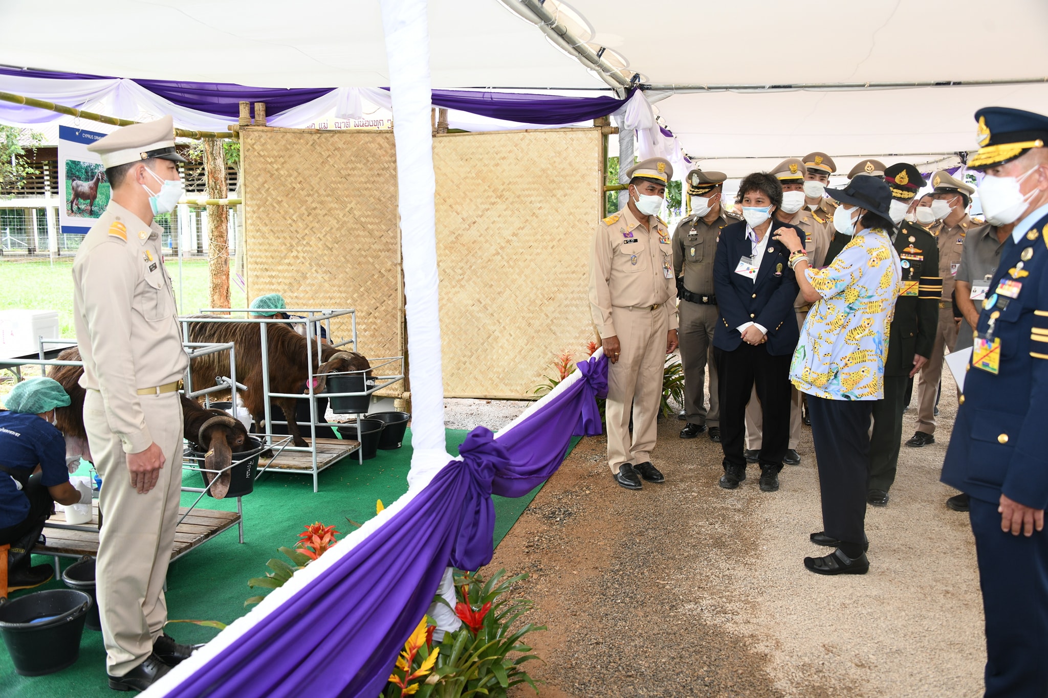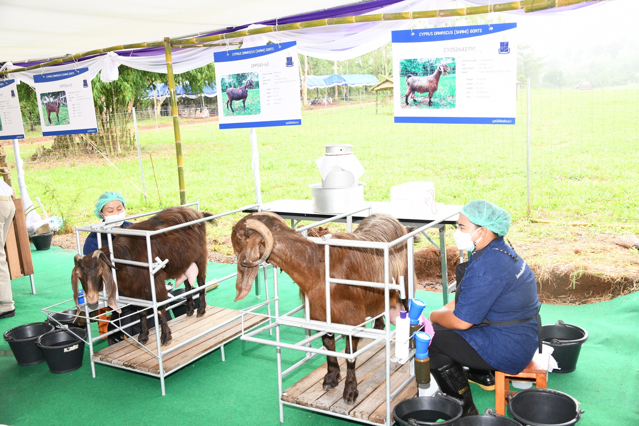 ในการนี้ เสด็จพระราชดำเนินไปทอดพระเนตรโรงเรือนอนุบาลลูกแพะพันธุ์ชามี่และโรงเรือนพ่อพันธุ์แพะชามี่ ซึ่งดำเนินการจัดกลุ่มพ่อแม่พันธุ์สำหรับการผสมพันธุ์ โดยสำนักเทคโนโลยีชีวภาพการผลิตปศุสัตว์ ในส่วนของการนำน้ำนมแพะมาแปรรูปเป็นผลิตภัณฑ์ต่างๆ ศูนย์วิจัยและพัฒนาผลิตภัณฑ์ปศุสัตว์เชียงใหม่ ได้ถ่ายทอดความรู้ ให้แก่เจ้าหน้าที่โครงการฯ เพื่อเตรียมความพร้อมสำหรับการแปรรูปผลิตภัณฑ์ในอนาคต
