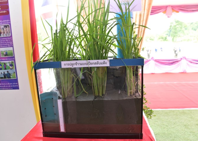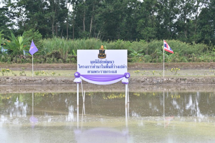 สำหรับข้าวที่ทรงปลูกในครั้งนี้คือข้าวพันธุ์ กข 87 โดยทรงปลูกด้วยวิธีหว่านน้ำตม ซึ่งเป็นวิธีการปลูกที่นิยมในเขตนาชลประทาน เนื่องจากประหยัดจำนวนเมล็ดพันธุ์ โดยข้าวที่หว่านจะเป็นข้าวที่นำขึ้นจากน้ำมาหุ้มด้วยกระสอบหรือผ้าเพื่อให้กองเมล็ดข้าวมีความชื้นใช้เวลา 1-2 คืน โดยรากจะค่อยๆ งอก ซึ่งช่วยให้การเจริญเติบโตรวดเร็วขึ้นหลังจากการหว่าน