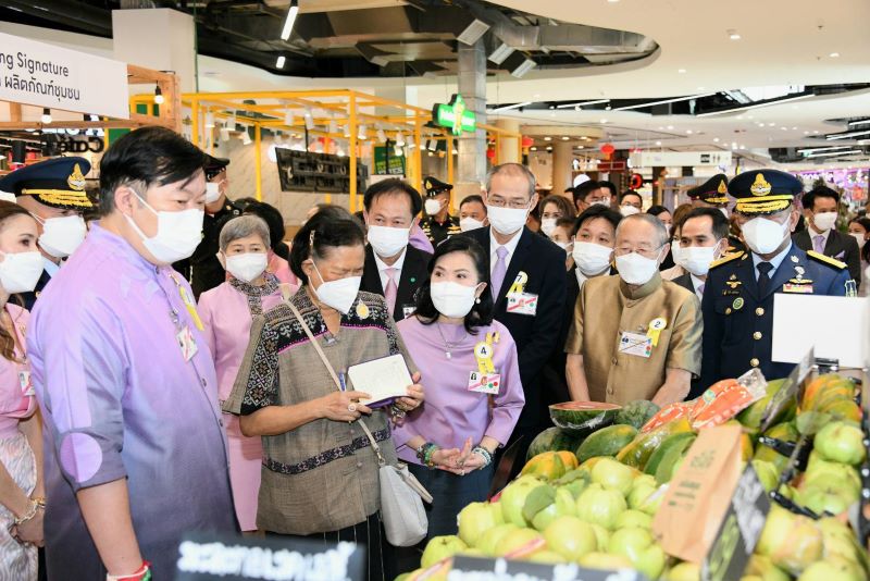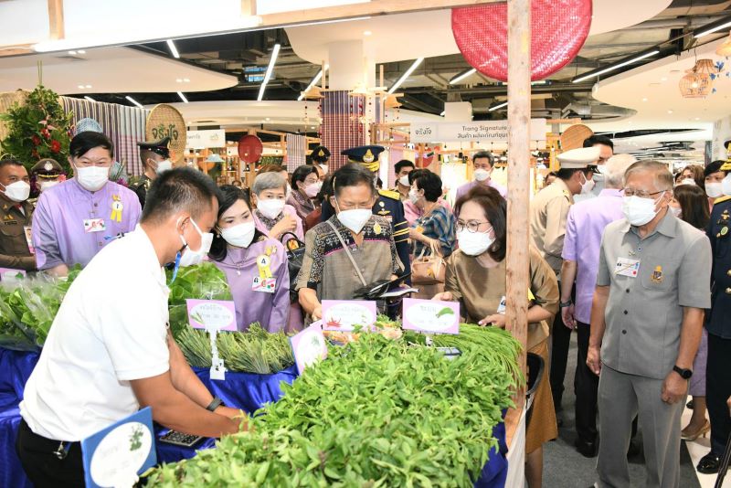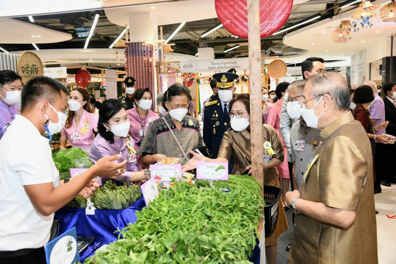 ในการนี้ ได้ทอดพระเนตรสินค้าของโครงการศูนย์รวบรวมพันธุ์ปาล์มน้ำมันของมูลนิธิชัยพัฒนา จังหวัดตรัง ซึ่งได้นำผลิตผลจากการพัฒนาไปวางจำหน่ายในโครงการตลาดจริงใจ Farmers’ Market จังหวัดตรัง ด้วย เช่น ผักกวางตุ้ง ผักกาดขาว ผักคะน้า โหระพา ฯลฯ