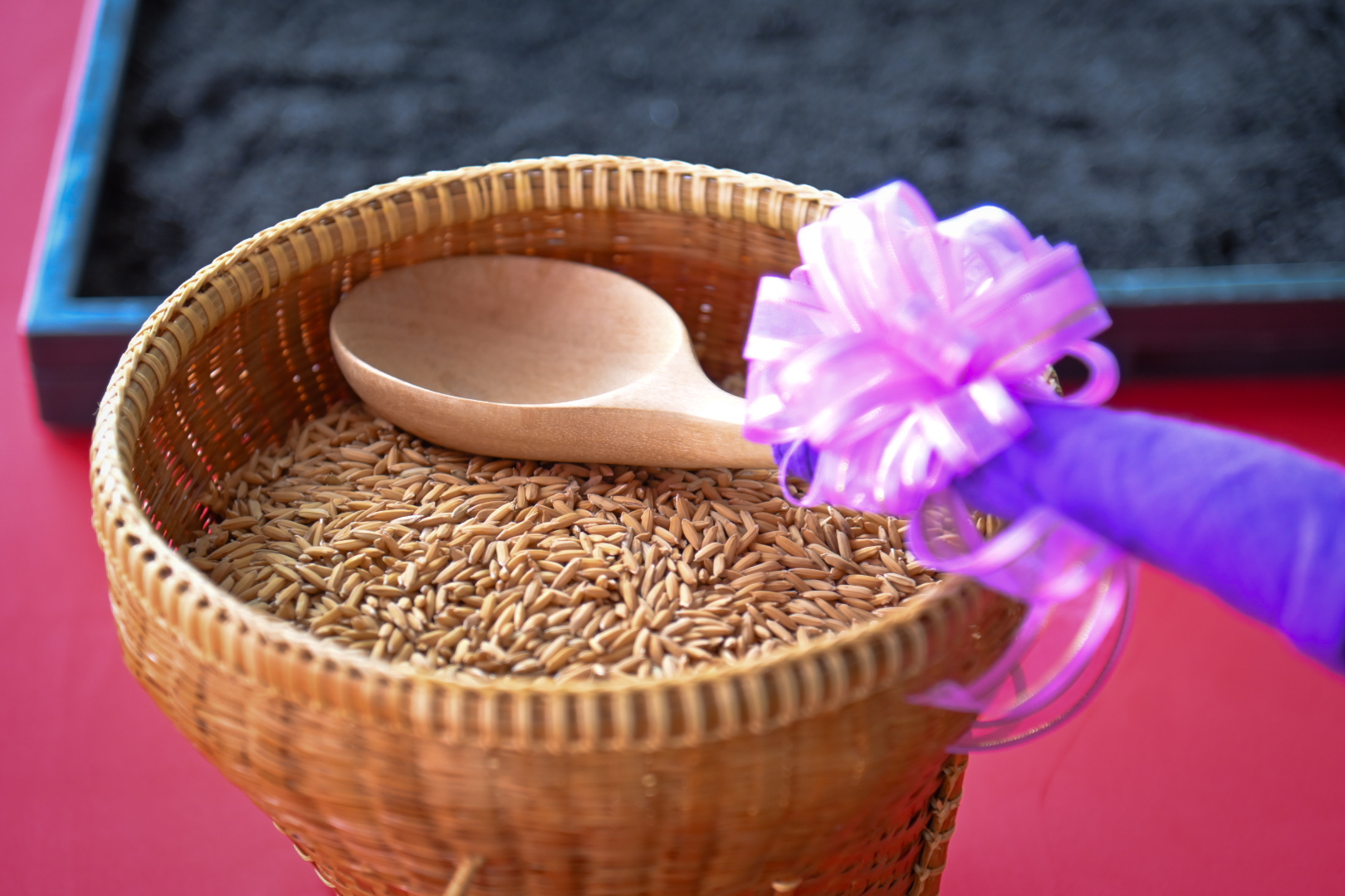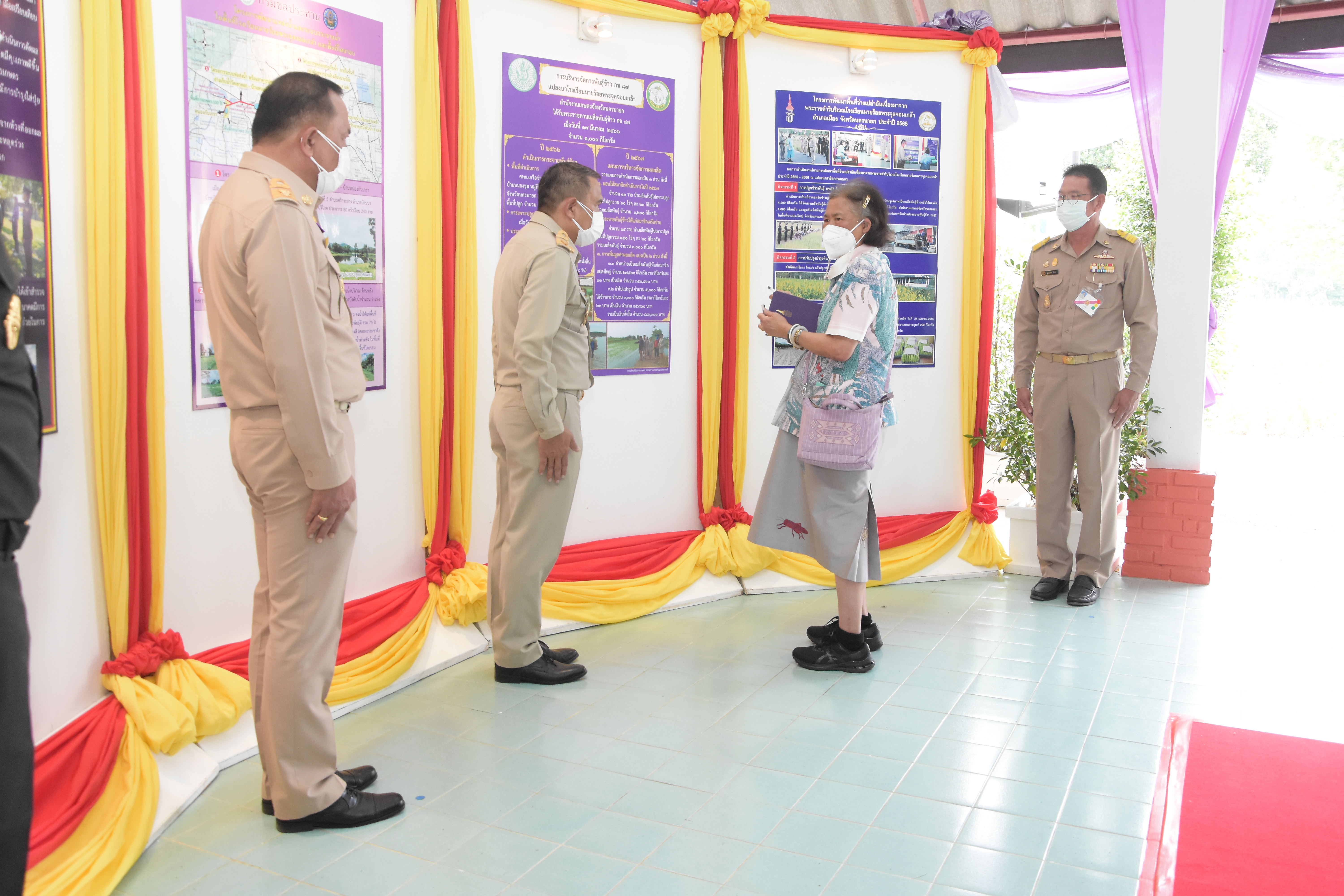 โอกาสนี้ ข้าวที่ได้เก็บเกี่ยวในฤดูนาปี 2565 จำนวน 4,200 กิโลกรัม ได้พระราชทานแก่โรงเรียน และเกษตรกร เพื่อดำเนินโครงการส่งเสริมการจัดทำแปลงขยายพันธุ์ข้าว กข 87 ในพื้นที่นาแปลงใหญ่ จังหวัดนครนายก ต่อไป