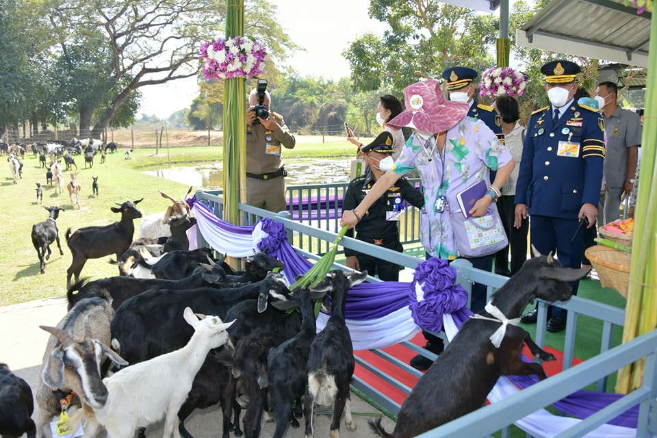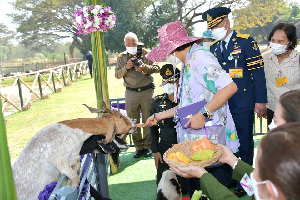 ศูนย์ผลิตพันธุ์แพะพระราชทาน "เพื่อนช่วยเพื่อน" ค่ายสมเด็จพระเอกาทศรถ มีแพะในโครงการทั้งสิ้น 134 ตัว เป็นเพศผู้ 49 ตัว เพศเมีย 85 ตัว ปัจจุบันศูนย์ได้น้อมเกล้าฯ ถวาย เพื่อพระราชทานแก่ราษฎรรวมทั้งสิ้น 321 ตัว ในโอกาสนี้ได้พระราชทานชื่อลูกแพะแฝดเกิดใหม่ พันธุ์แบล็คเบงกอลเพศเมีย ว่า “กิริยา“ และ “มารยาท“