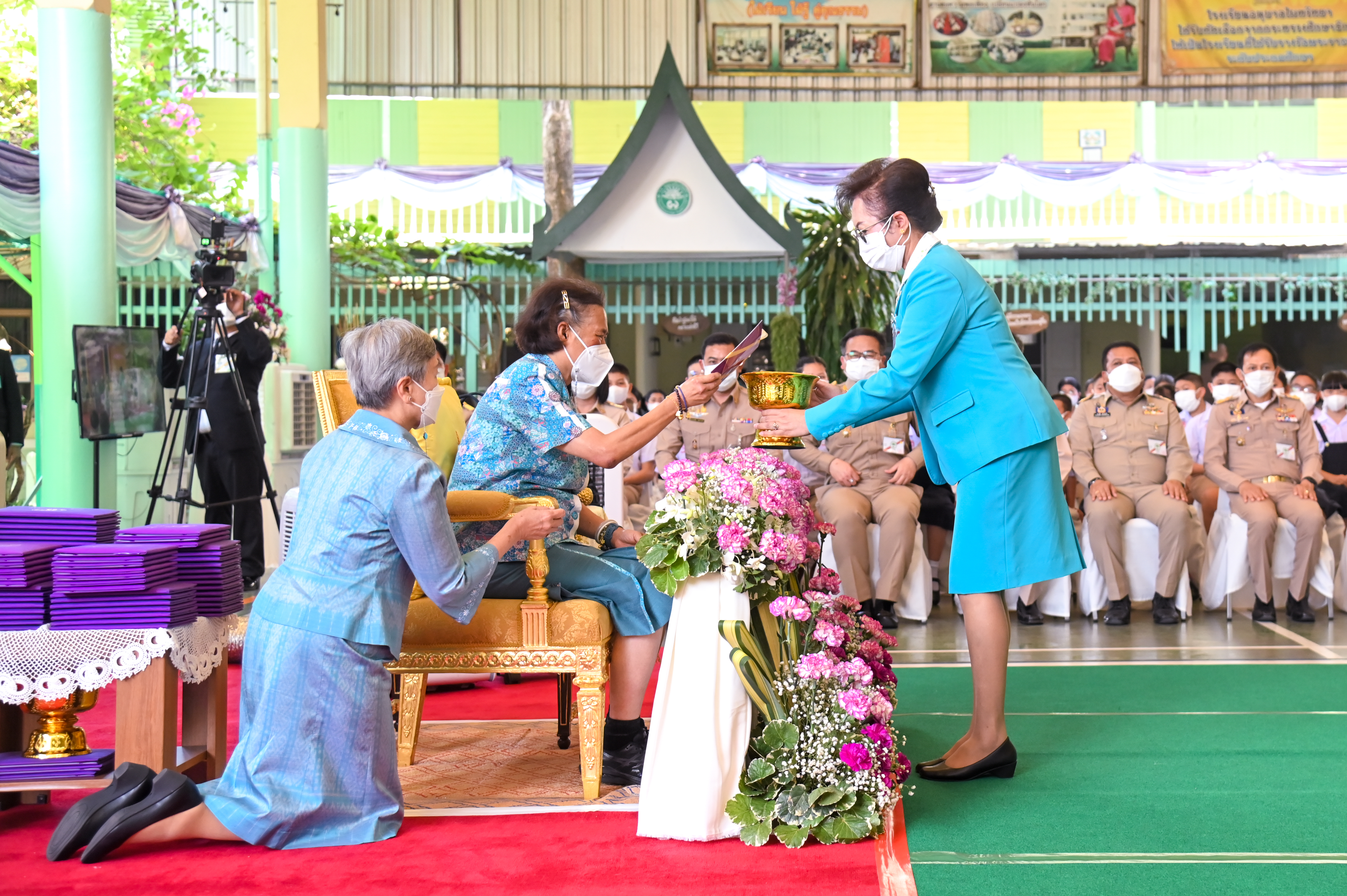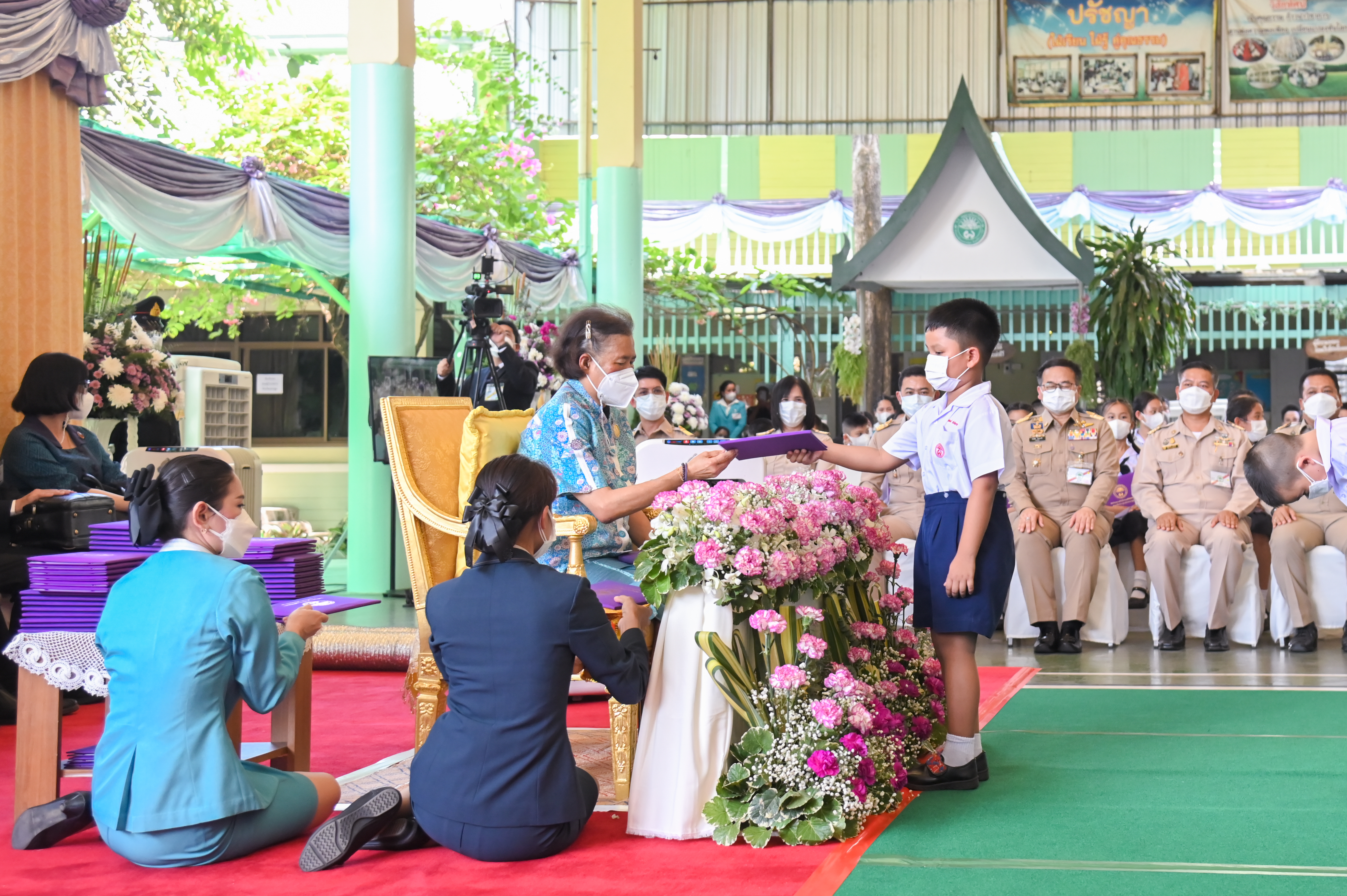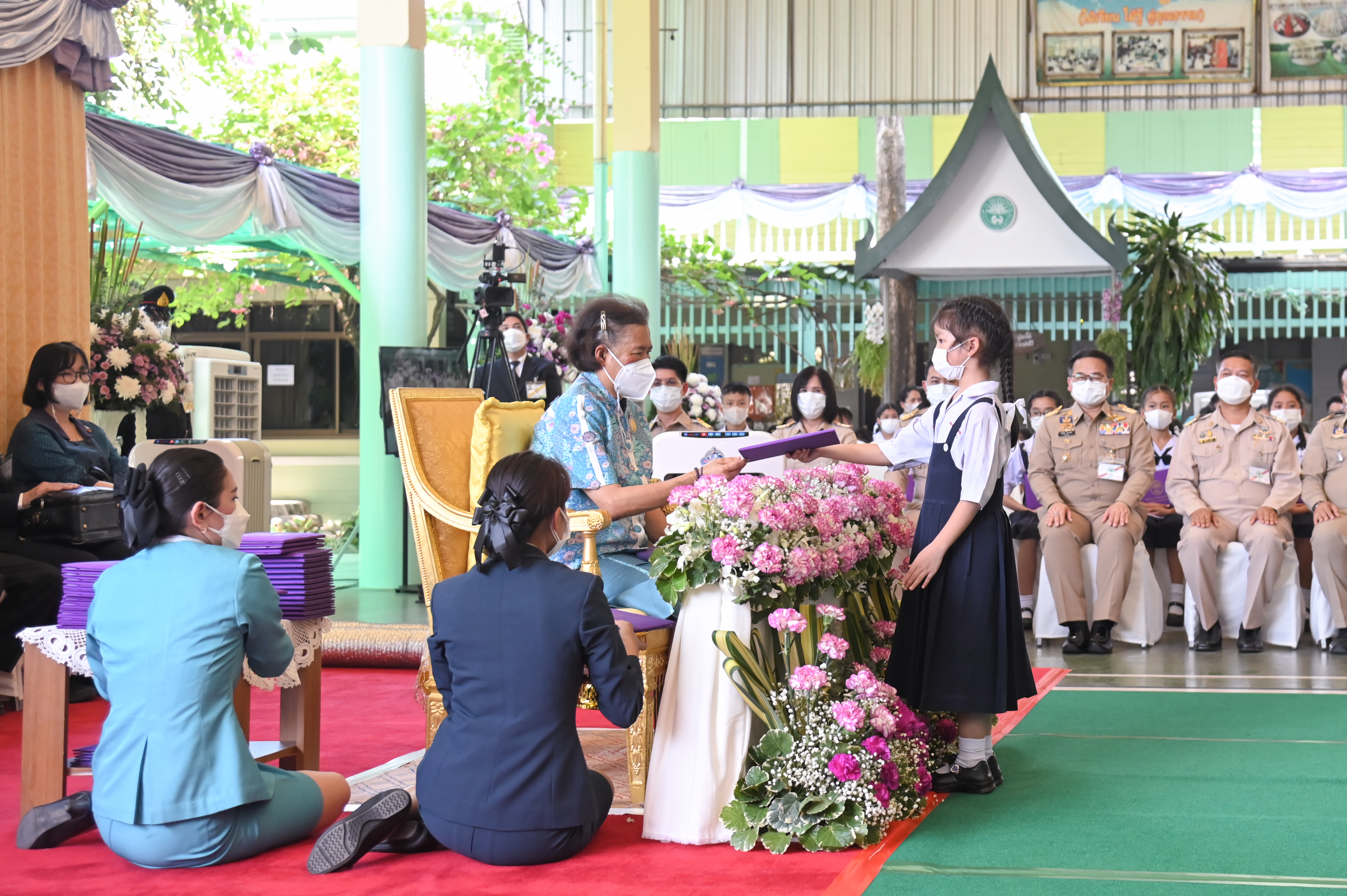 โอกาสนี้มีนักเรียนเข้าเฝ้าทูลละอองพระบาท ถวายตัวเป็นนักเรียน จำนวน 38 ราย และนักเรียนชั้นประถมศึกษาปีที่ 6 จำนวน 25 ราย กราบถวายบังคมลา จากนั้นทรงรับชมการแสดงของนักเรียน ประกอบด้วย ฟ้อนลาวดวงเดือน และละครร้องเรื่องตุ๊กตายอดรัก ซึ่งเป็นบทพระนิพนธ์ของพระเจ้าบรมวงศ์เธอ กรมพระนราธิปประพันธ์พงศ์