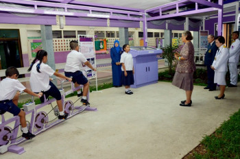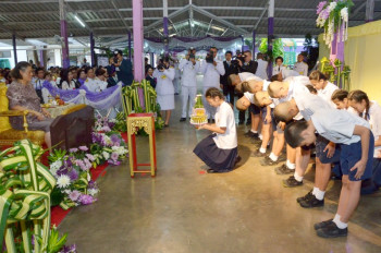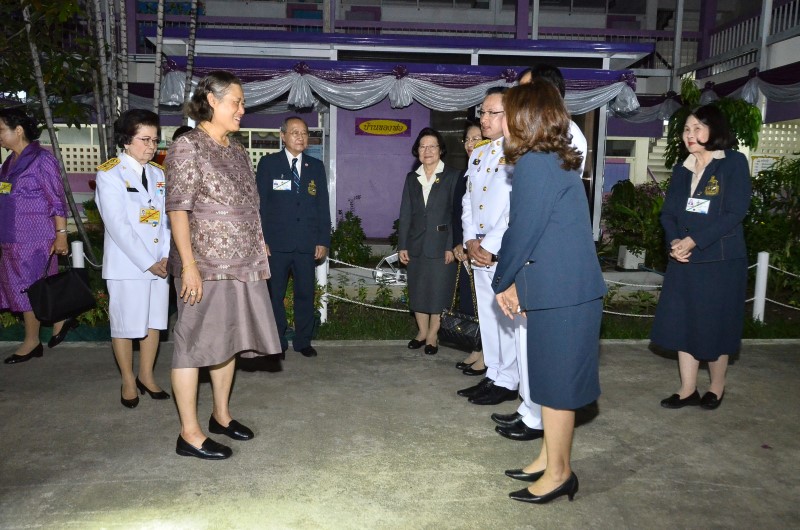 ในการนี้ นางอุดมศิลป์ ศรีสมบูรณ์ ผู้อำนวยการโรงเรียนฯ กราบบังคมทูลเบิกครูและนักเรียนที่มีความวิริยะอุตสาหะเข้าเฝ้าฯ รับพระราชทานรางวัลและทุนการศึกษา และกราบบังคมทูลเบิกนักเรียนเข้าเฝ้าทูลละอองพระบาท ถวายตัวเป็นนักเรียน จำนวน 49 ราย และนักเรียนชั้นประถมศึกษาปีที่ 6 จำนวน 18 ราย กราบถวายบังคมลา จากนั้นทอดพระเนตรการแสดงโขนใหม่ชัยพิทยพัฒน์ฯ เรื่องรามเกียรติ์ ตอนจองถนน และบ้านพลังงานแสงอาทิตย์